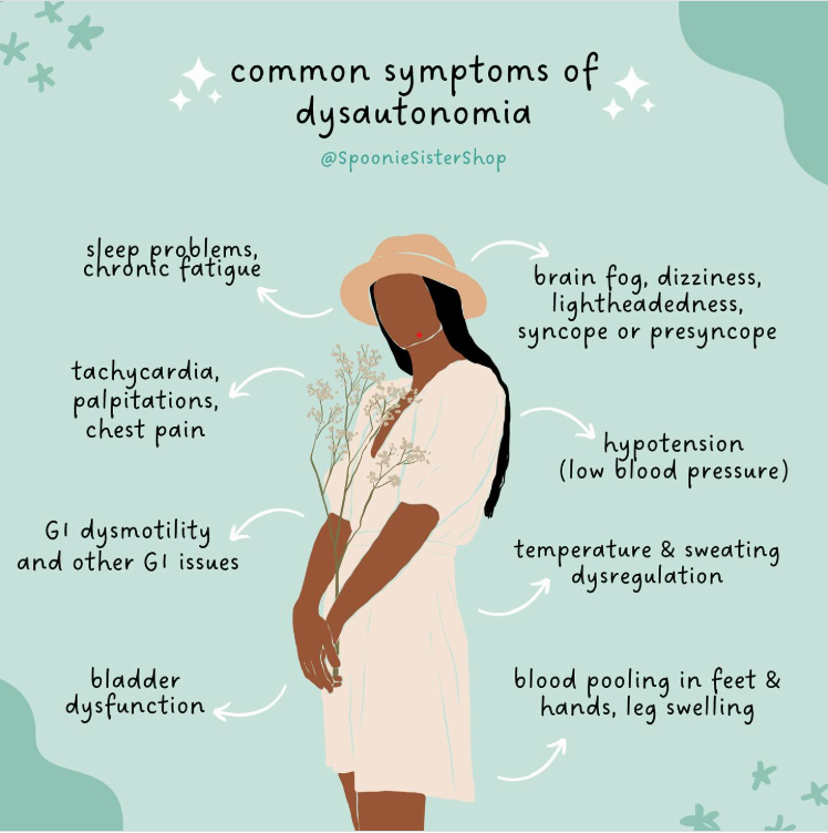 “Dysautonomia is an umbrella term used to describe several different medical conditions that cause a malfunction of the Autonomic Nervous System. The Autonomic Nervous System controls the ‘automatic’ functions of the body that we do not consciously think about, such as heart rate, blood pressure, digestion, dilation and constriction of the pupils of the eye, kidney function, and temperature control. People living with various forms of dysautonomia have trouble regulating these systems, which can result in lightheadedness, fainting, unstable blood pressure, abnormal heart rates, malnutrition, and in severe cases, death.